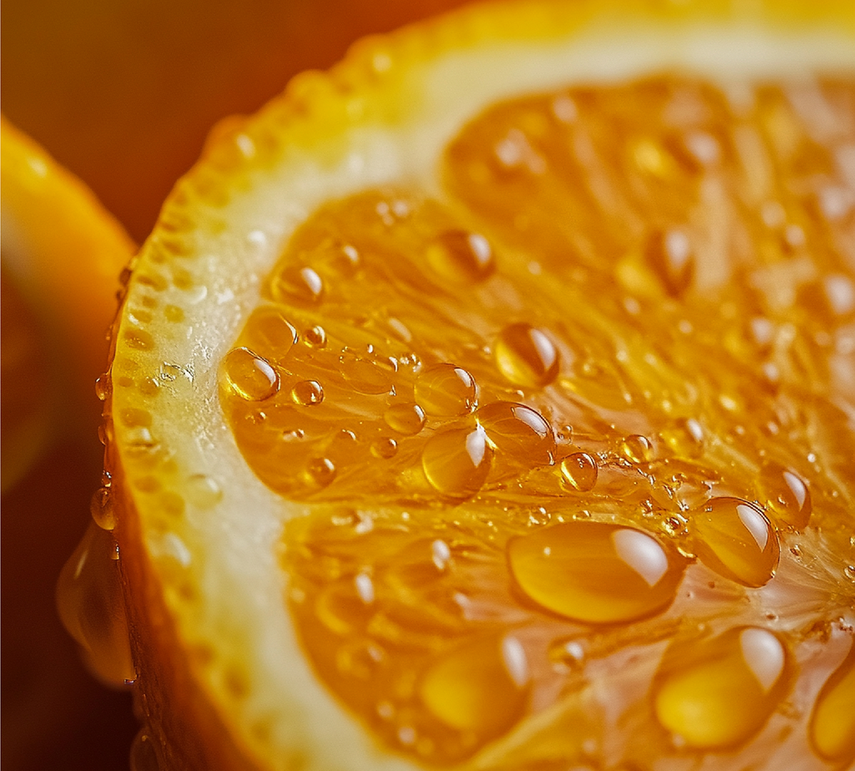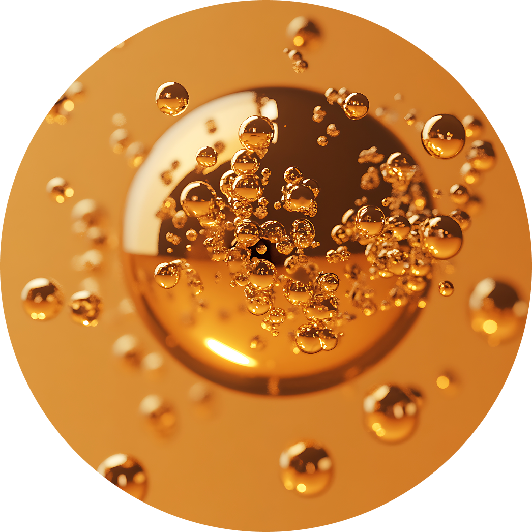 A powerful lipid antioxidant that shields skin from UV and environmental damage. It moisturizes, soothes, and enhances skin repair while amplifying the penetration of active ingredients. Together with Vitamin C, it forms a dual shield against oxidative aging.